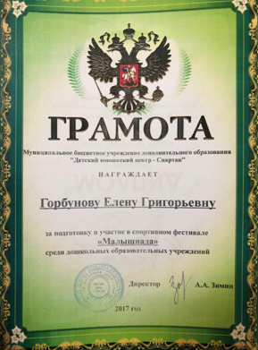 Должность: инструктор по физической культуре