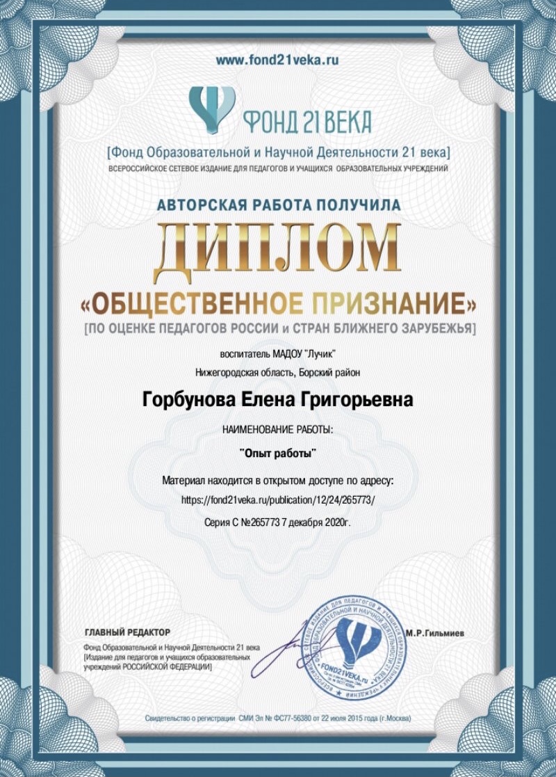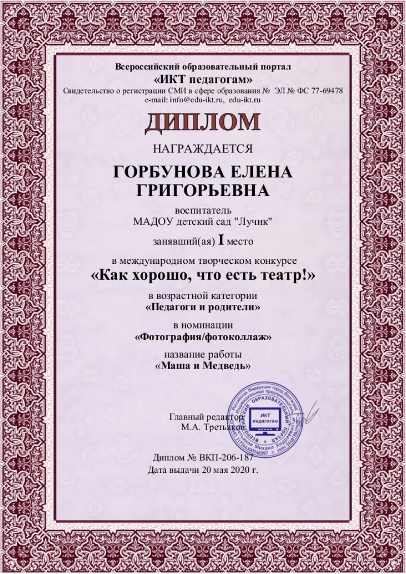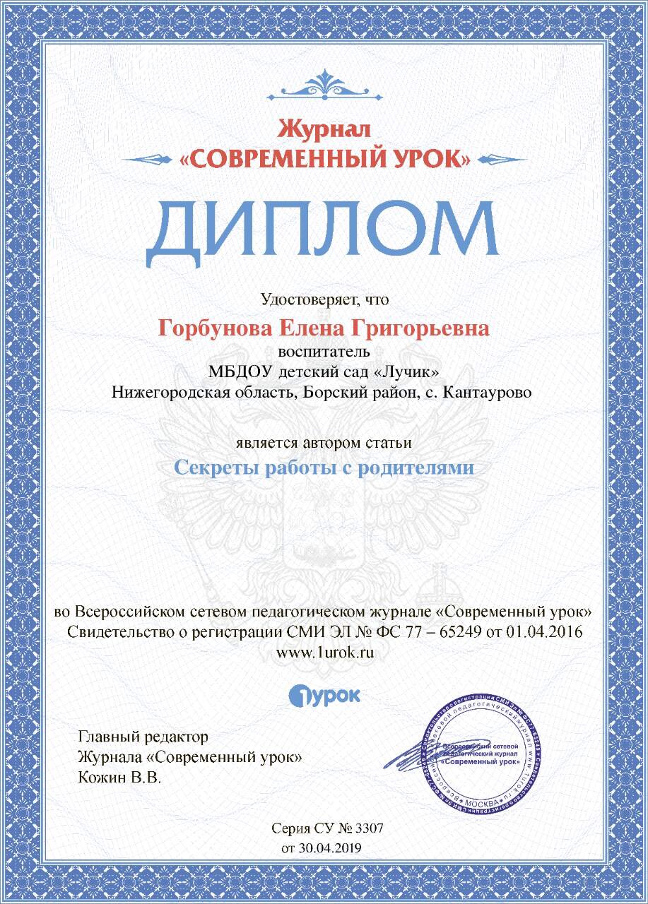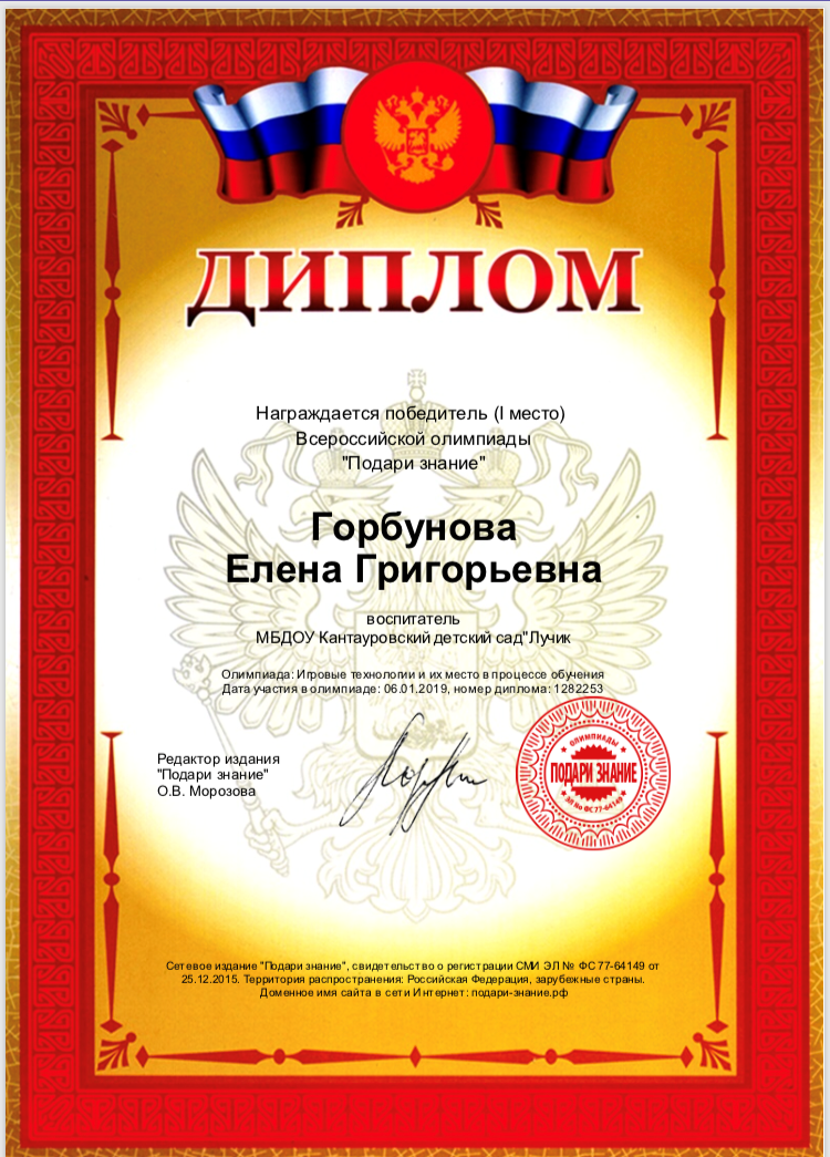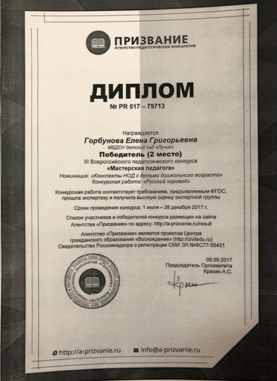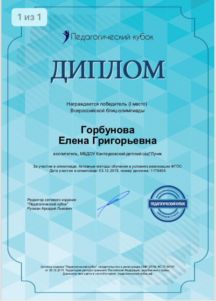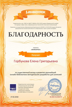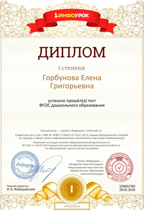 ФИО: Горбунова Елена Григорьевна