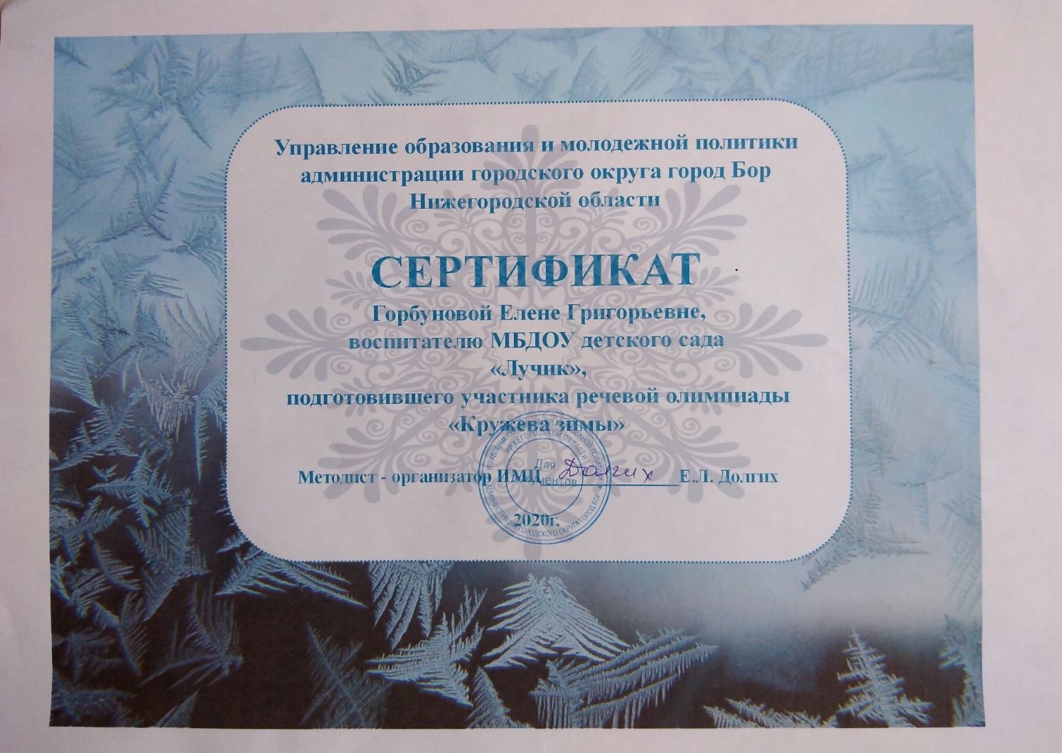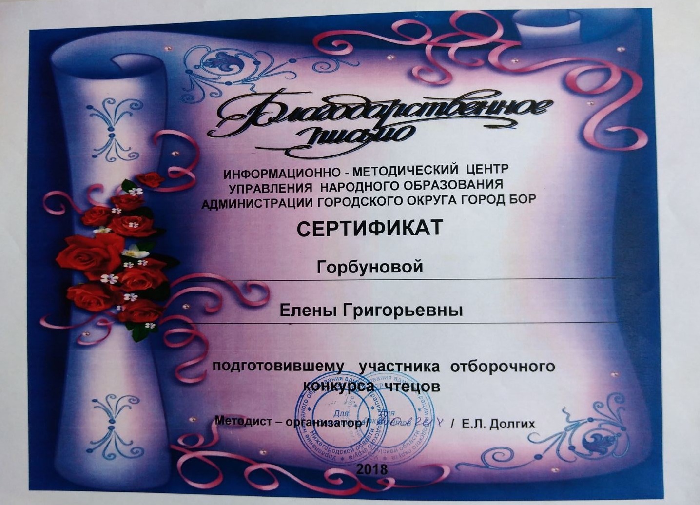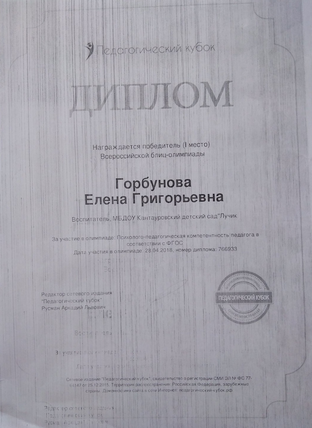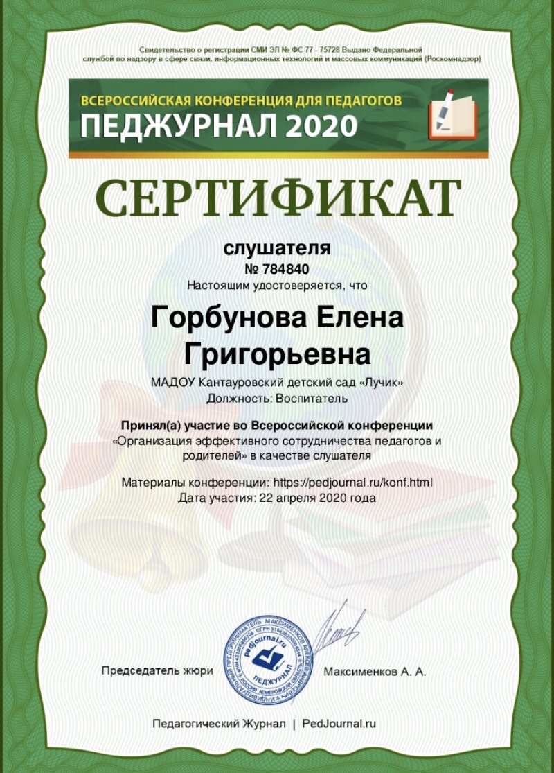 ФИО: Горбунова Елена Григорьевна