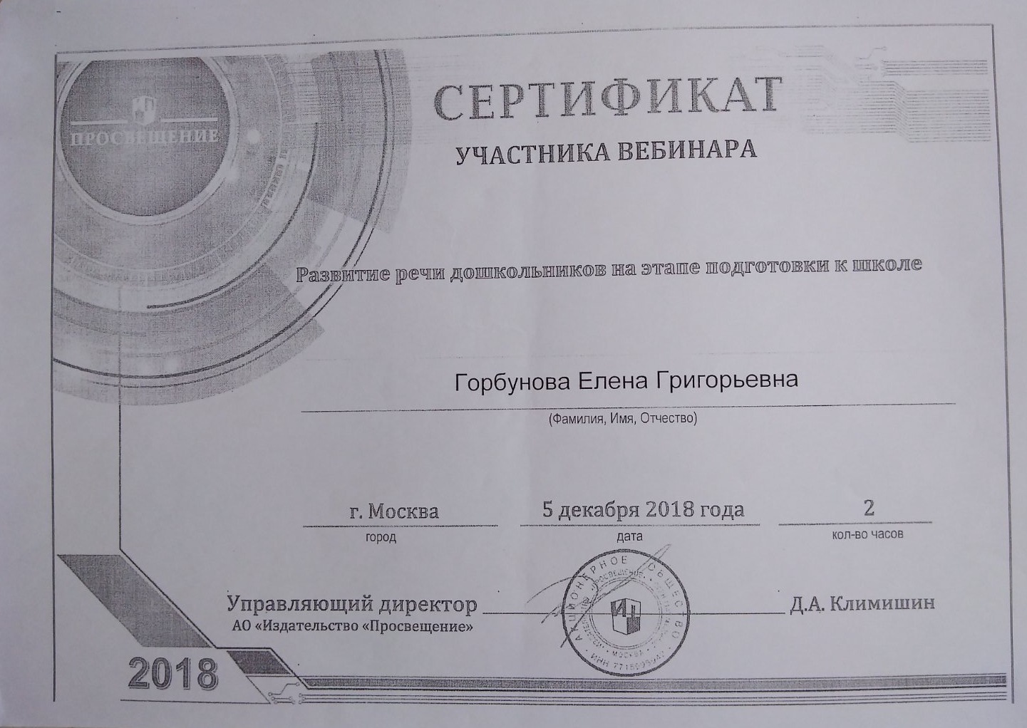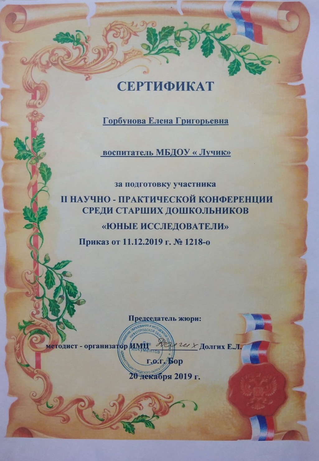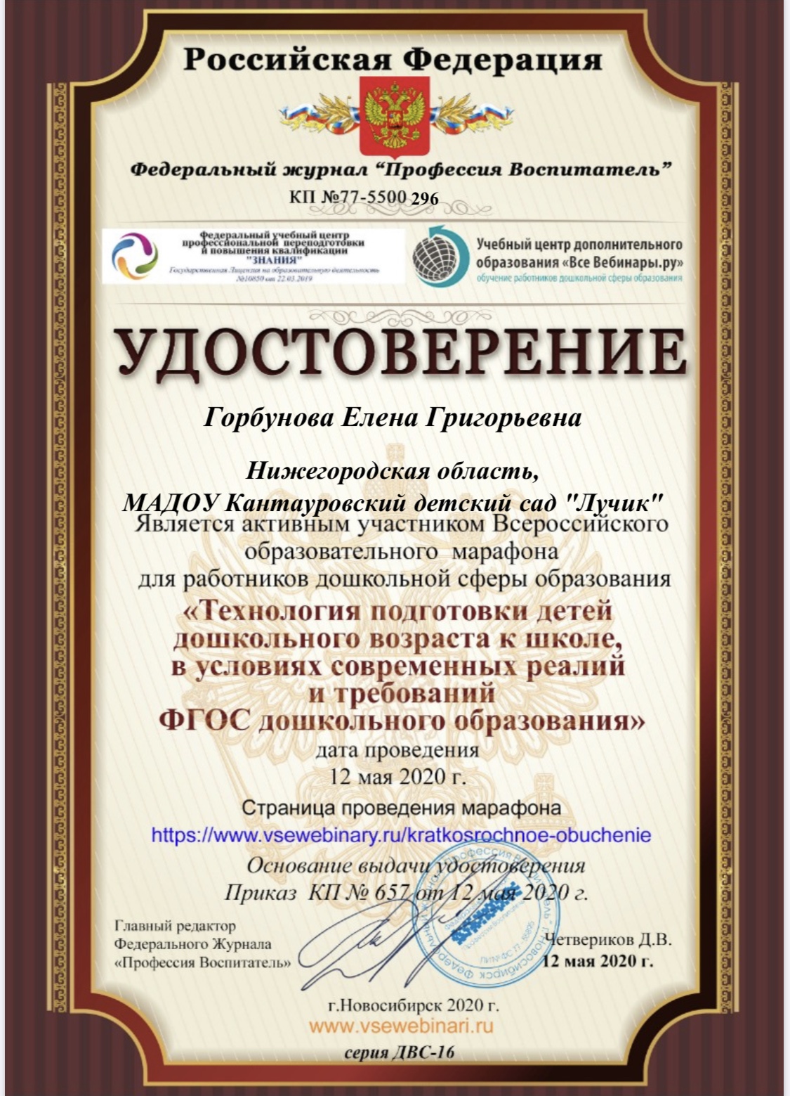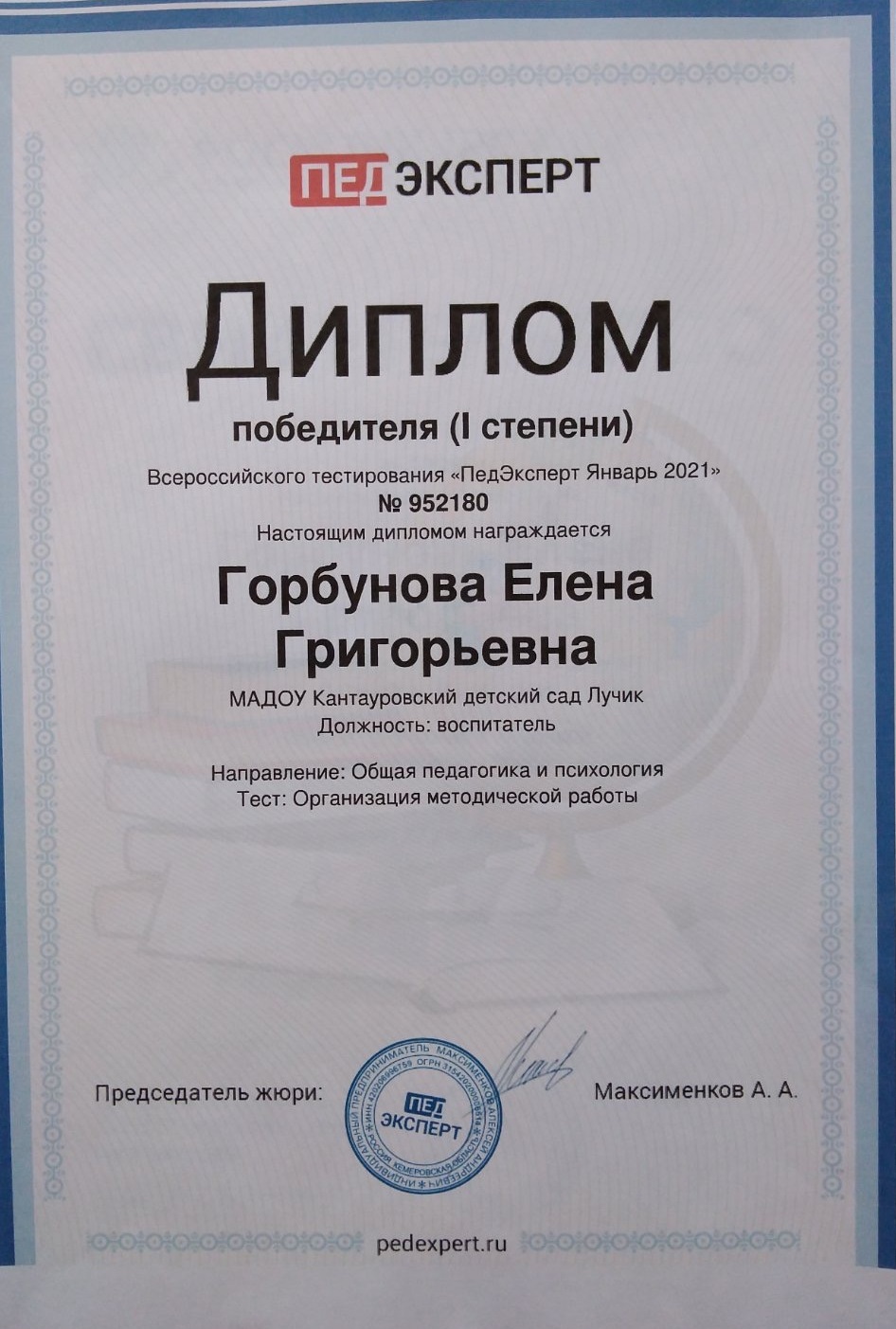 ФИО: Горбунова Елена Григорьевна