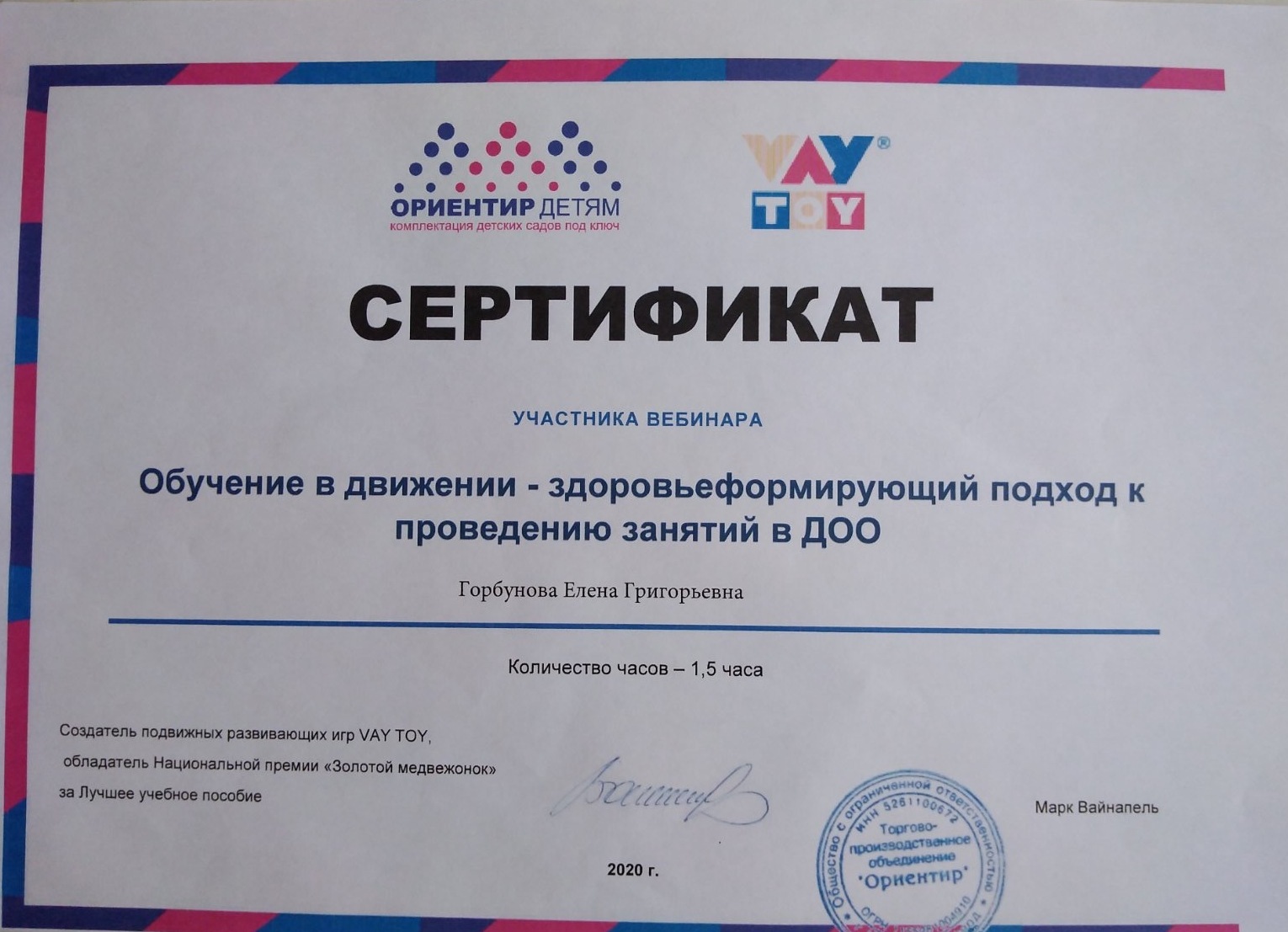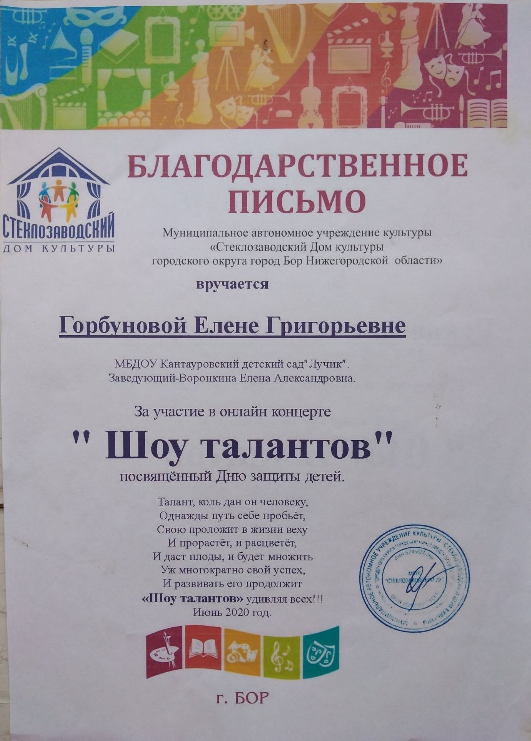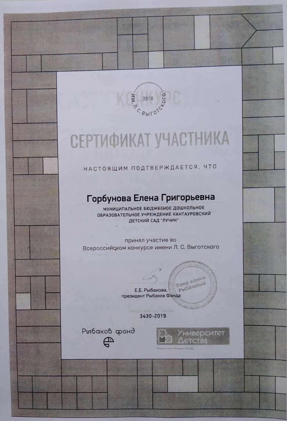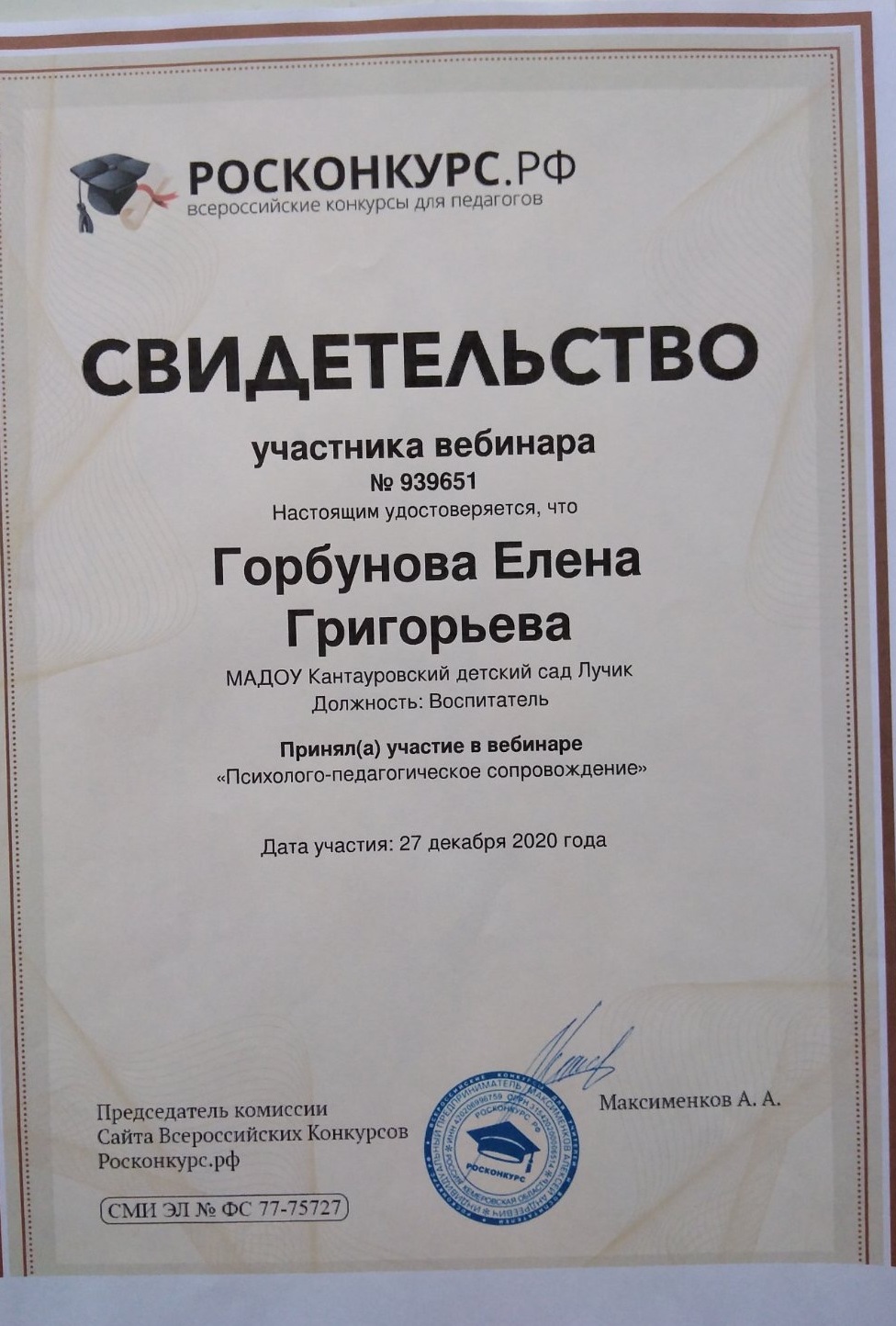 ФИО: Горбунова Елена Григорьевна