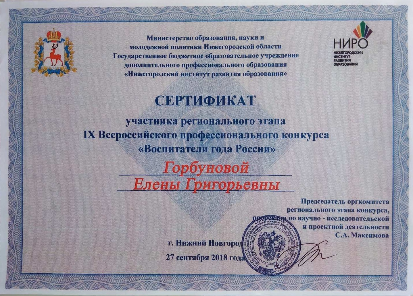 Уровень образования: Высшее,НГПУ им.А.М.Горького