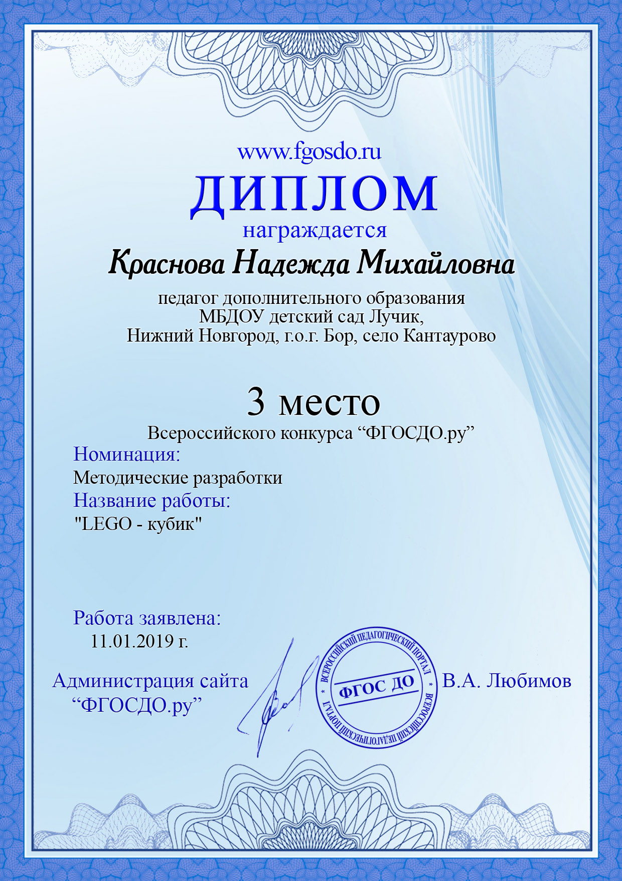 Должность: воспитатель
