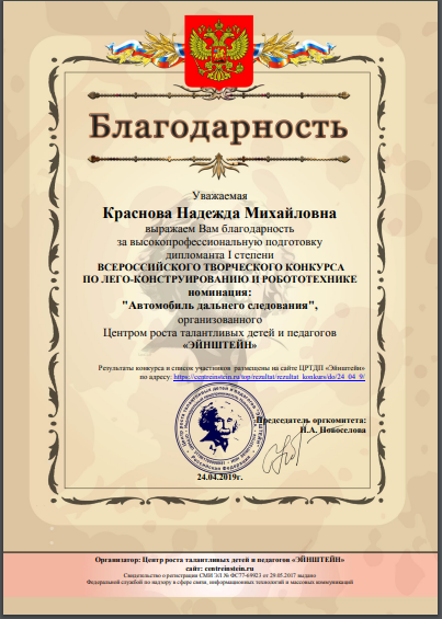 образовательных конструкторов» март 2018 г