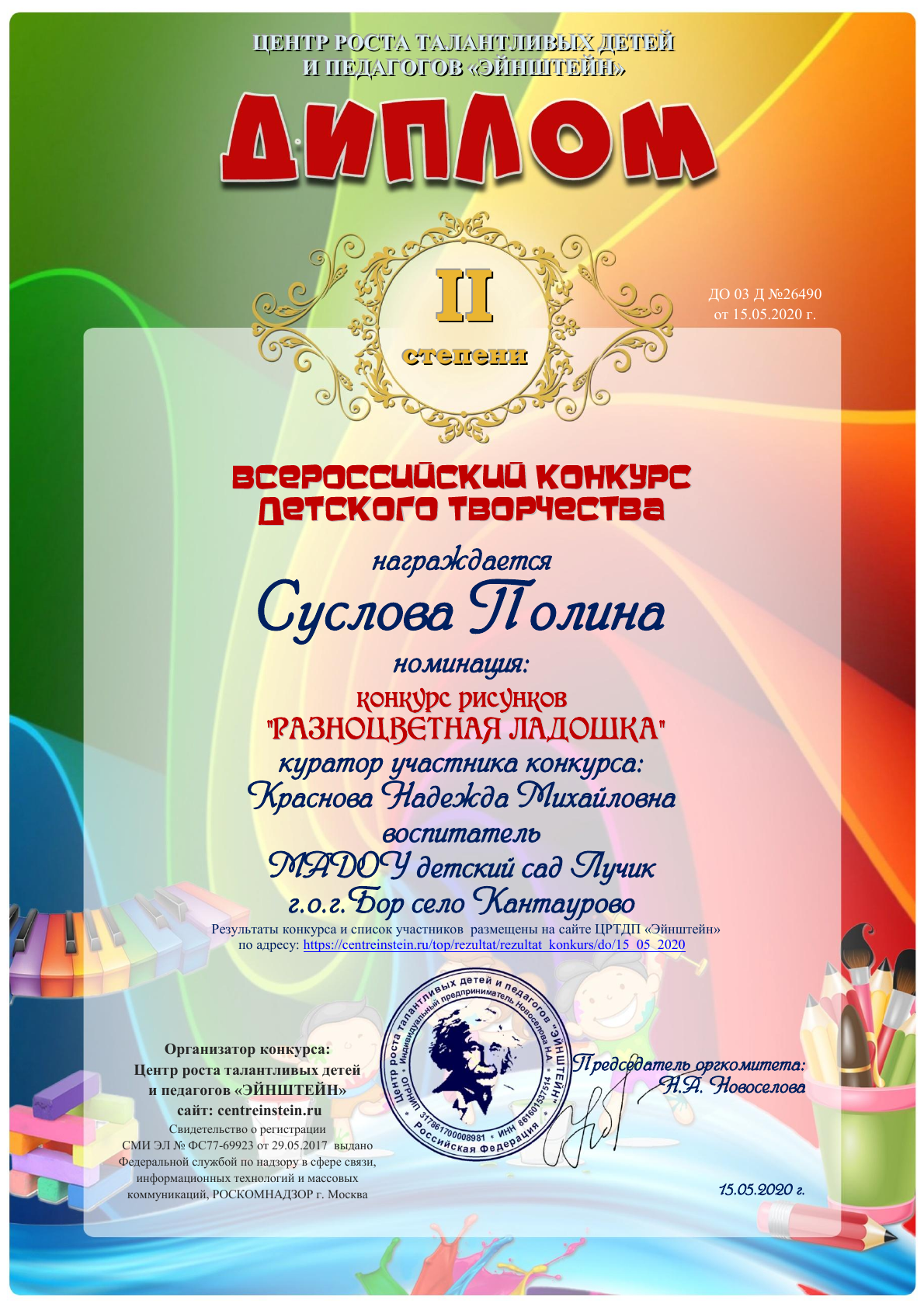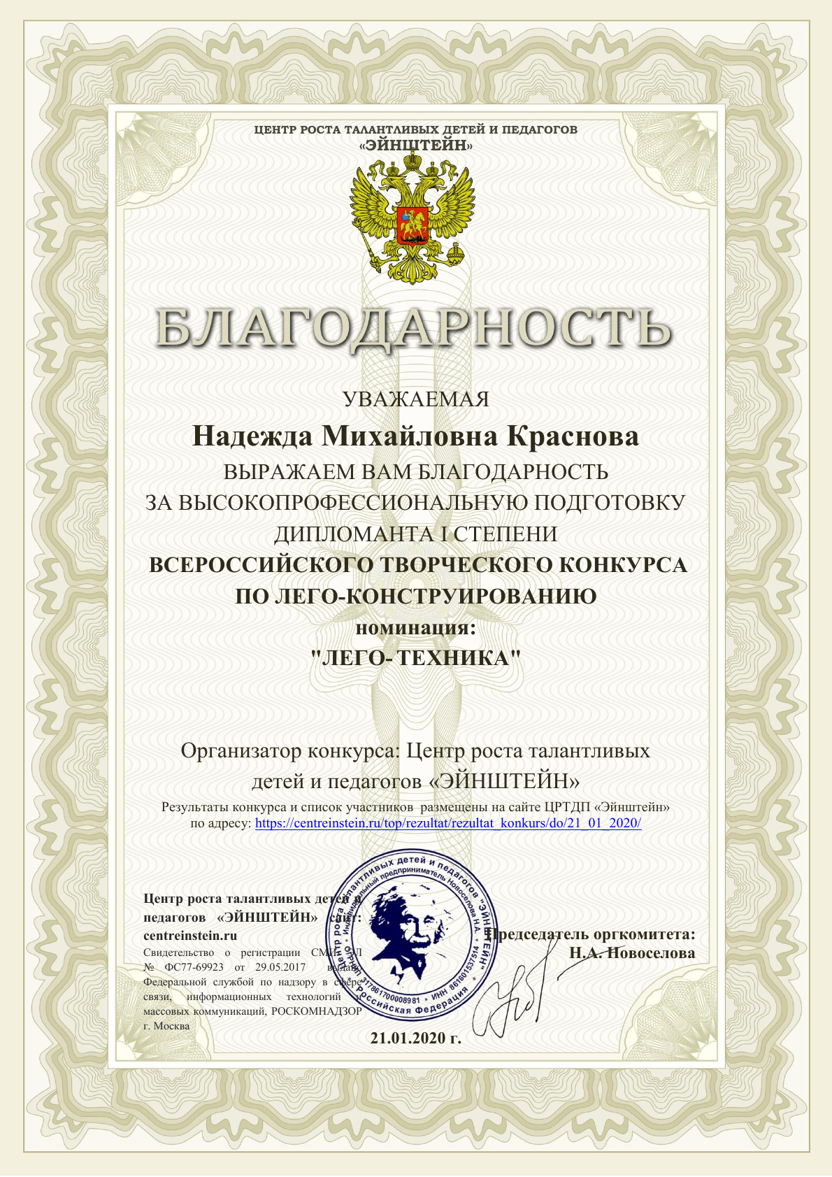 Квалификация: Высшая кв.категория 2020 г