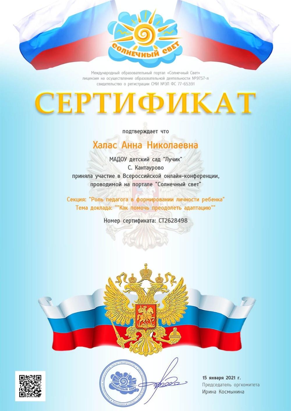 ФИО: Халас Анна Николаевна