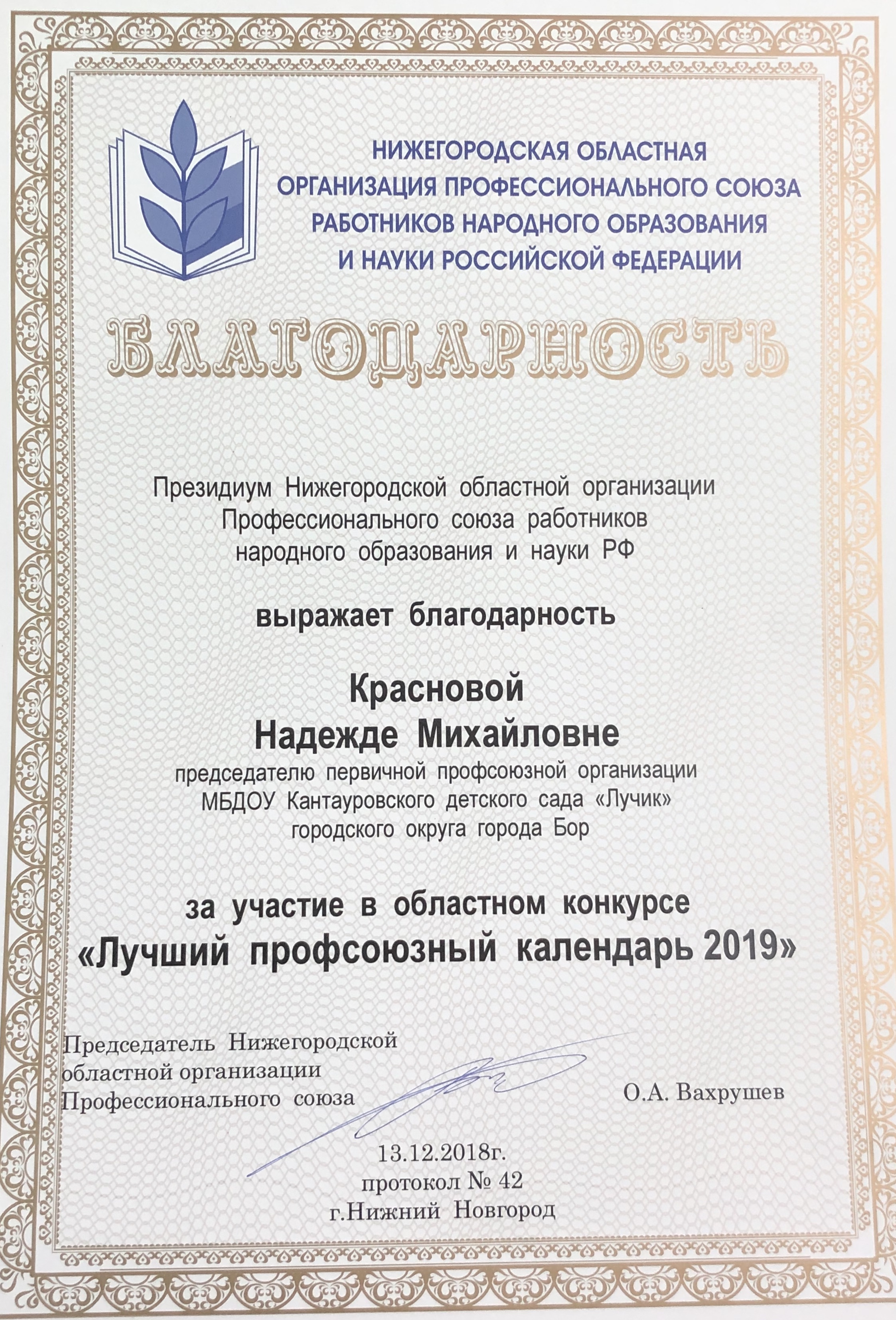 Председатель профкома: Краснова Надежда Михайловна